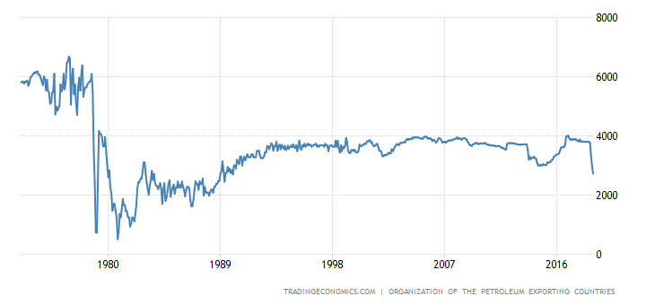 Iran, wydobycie ropy naftowej w latach 1970-2017